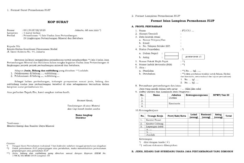 Tahukah Anda pengurusan Izin Usaha Jasa Pertambangan tidak bisa dilakukan sembarangan. Pihak yang bersangkutan terlebih dahulu perlu membuat surat dengan format yang sudah ditentukan oleh Kementerian ESDM. Jadi, apa itu surat permohonan IUJP? Secara sederhana, surat permohonan IUJP adalah dokumen formal yang diajukan oleh badan usaha kepada pemerintah (Menteri ESDM atau Gubernur) untuk mendapatkan Izin Usaha Jasa Pertambangan (IUJP).